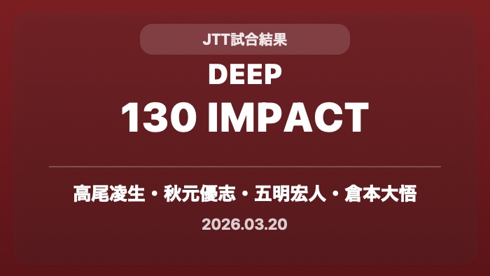 DEEP 130 IMPACTに出場したJTT勢4試合の結果まとめ。高尾凌生、秋元優志、五明宏人、倉本大悟の試合内容、勝敗、試合の背景、所感まで振り返る。