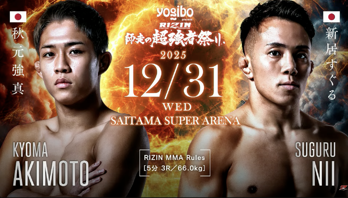 秋元強真が大晦日RIZIN「師走の超強者祭り」に緊急参戦。10日前オファーで決定した新居すぐる戦を、試合決定の背景、両者の相性、スタンドと組みの攻防、勝敗予想までMMA視点で徹底分析する。